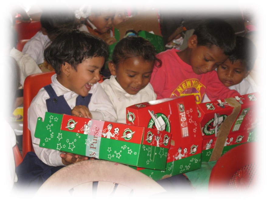 Operation Christmas Child, the program through Samaritan’s Purse which sends shoeboxes filled with goodies to children around the world, came to Tansen recently! Some of you are probably aware that the Nepali calendar is different from the western one, so when we learned on April 8 of this year that many large cartons filled with shoe boxes had arrived in Tansen, we were thinking – “this is a bit late for Christmas!” But – then we realized that in the Nepali calendar, it was the 25th day of the 12th month of the year! How amazing is that?!